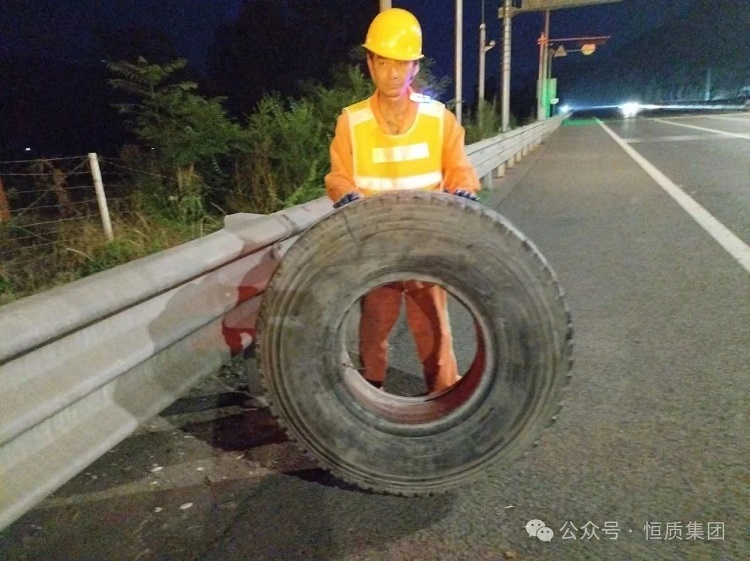 5月31日20時(shí)左右,恒質(zhì)集團(tuán)青蘭養(yǎng)護(hù)項(xiàng)目部的養(yǎng)護(hù)巡查人員在執(zhí)行夜間巡查任務(wù)時(shí),在行車道旁發(fā)現(xiàn)一只被遺落的輪胎。鑒于該輪胎存在引發(fā)車輛側(cè)翻、追尾等嚴(yán)重事故的重大